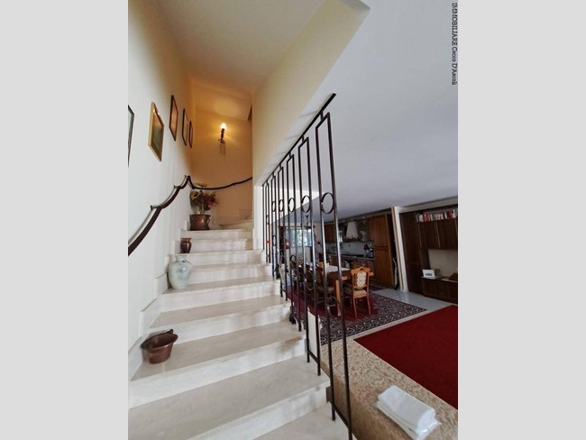 La proprietà sviluppa principalmente su due livelli, oltre al piano seminterrato (accatastato come garage), per un totale di mq. 254 ed è composta da al piano terra ampio soggiorno, cucina, bagno e terrazzo dal quale si accede anche al giardino, al piano primo tre camere da letto e due bagni (di cui uno in camera) e due balconi, al piano primo sotto strada grande rustico con accesso diretto al giardino, composto da angolo cottura, camino e bagno.