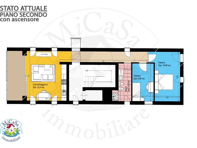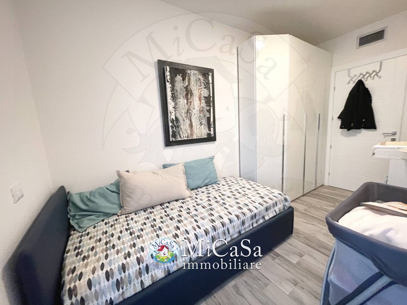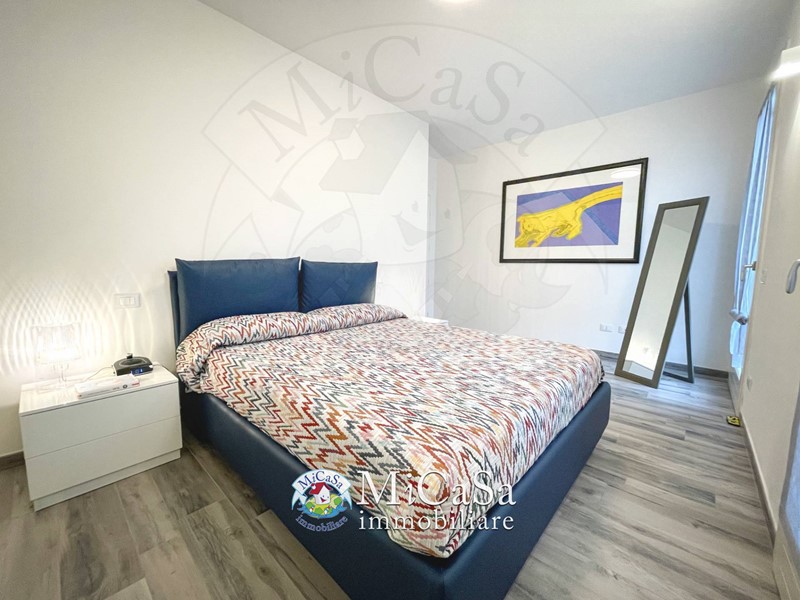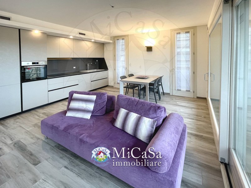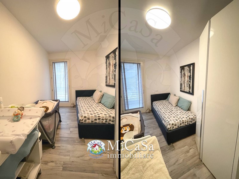 Composto da ingresso in disimpegno con balcone, soggiorno con cucina a vista che affaccia con ampia apertura vetrata sulla loggia, camera matrimoniale, camera singola e bagno con finestra.
