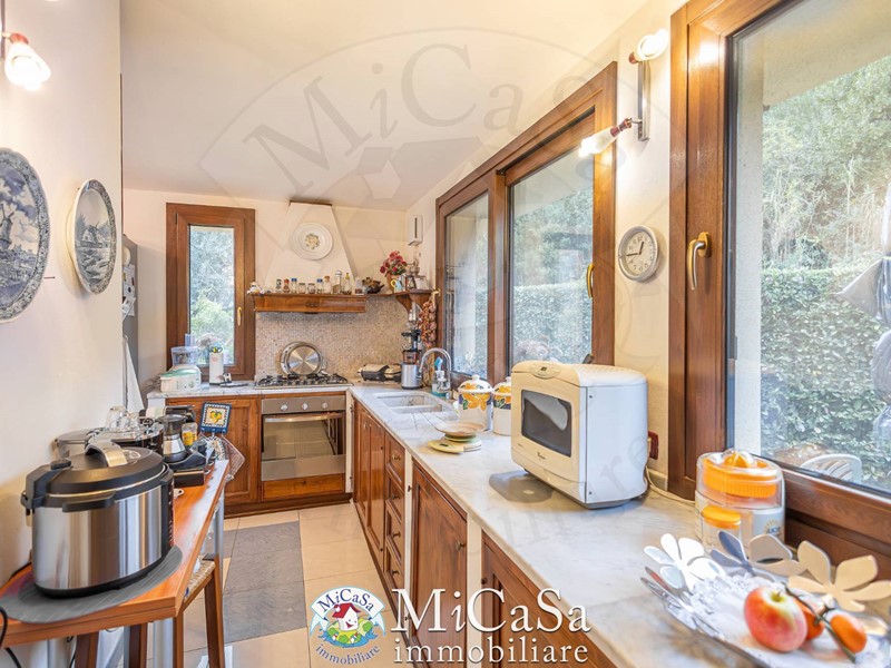Completano la proprietà al piano terra il curato giardino di 120mq che circonda la casa su tre lati, il garage e un comodo posto auto all'interno della proprietà con accesso da cancello carrabile e pedonale,.