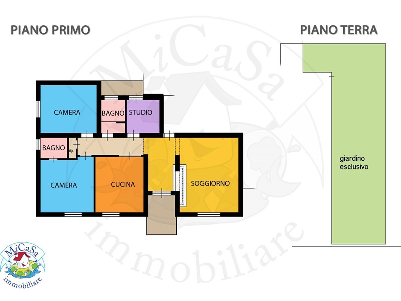 Completano la proprietà: giardino esclusivo di 60 mq attrezzato di casina in legno di 6mq. Riscaldamento autonomo. Non sono presenti spese condominiali. Presenza di piccolo condominio di 6 unità abitative.
