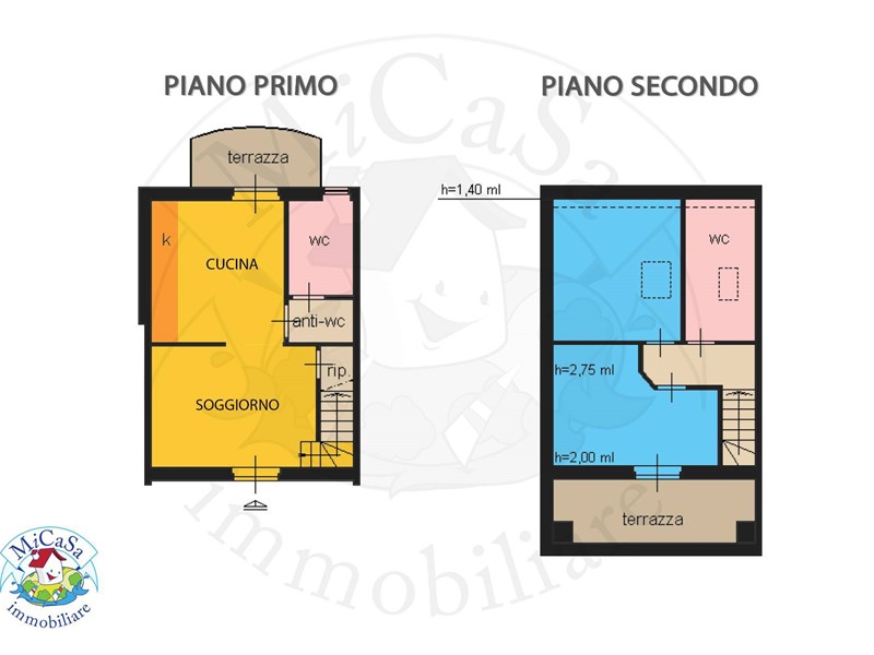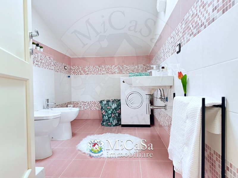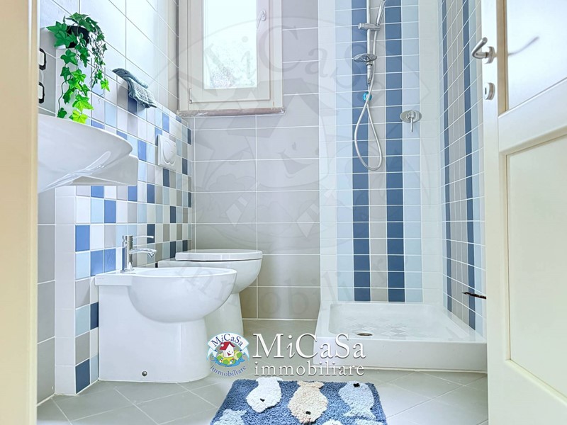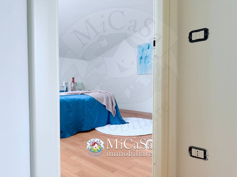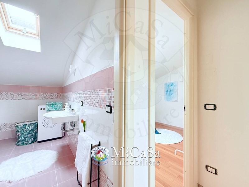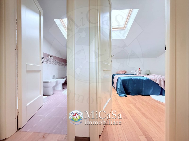 Composizione dell'immobile: al piano primo troviamo l'ingresso che si apre su un soggiorno, una sala da pranzo con angolo cottura e accesso alla terrazza, un bagno con box doccia e un pratico ripostiglio nel sottoscala. Al piano mansardato, sono presenti altri due vani, un bagno e una terrazza a tasca.