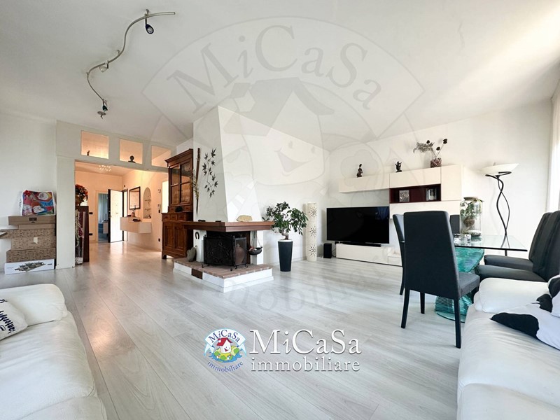 L'appartamento è dotato di riscaldamento autonomo a metano con radiatori in alluminio, allarme volumetrico, cancello automatico, cassetta di sicurezza e camino. Gli infissi esterni in alluminio effetto legno con doppio vetro e le tapparelle manuali in alluminio assicurano isolamento e sicurezza. La pavimentazione in laminato, posata sopra il pavimento preesistente, conferisce un aspetto moderno e accogliente.
