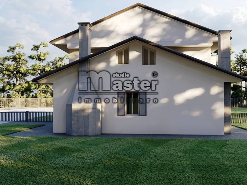 La villetta bifamiliare a Paese si compone di 3 livelli di cui 2 fuori terra più piano interrato: al piano terra si trova il soggiorno con caminetto alla valesana, cucina abitabile che dà sul giardino privato che circonda l'immobile su 3 lati, bagno al p.terra e camera matrimoniale. Al piano primo si trovano le 3 stanze di cui la matrimoniale di oltre 16mq. con terrazza, camera singola con terrazza, e stanza pluriuso a sottotetto mansardata con travi a vista e bagno. Al piano interrato c'è il garage doppio affiancato di 27mq., magazzino/taverna con predisposizione al caminetto e w.c./lavanderia di oltre 8mq.