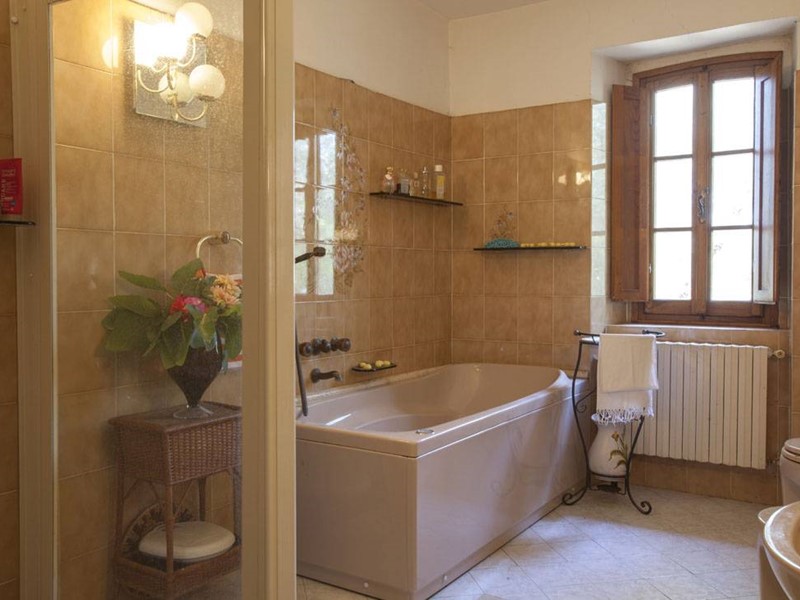 Rif. 0785 - Montespertoli versante Tavarnelle vendesi caratteristica colonica con Ha 10.00.00 di terreno con numero due unità abitative di circa mq 880. Il fabbricato risale al 1420 le abitazioni risultano divise indipendenti con facilità collegabili tramite una porta interna. Nel restauro sono stati usati material pregiati quali parquet e cotto, mentre la struttura del tetto e dei solai è stata realizzata in legno e mezzane in cotto toscano come di solito si fa nel restauro conservativo colonico. Abitazione n° 2 grande soggiorno, disimpegno, cucina abitabile e bagno al piano terreno oltre al disimpegno, a due camere matrimoniali con servizi igienici al piano primo. Nella vendita sono compresi anche un grande locale ad uso tinaia ed un locale ad uso cantina oltre ad altri accessori quali un forno con locali ad uso ripostigli ed un ampio loggiato. Terreno di 10 ettari ca.coltivati a bosco e oliveto.Ristrutturazione di pregio eseguita recentemente, Disponibile da subito. La vendita comprende anche una modesta attrezzatura agricola per mantenere la proprietà.