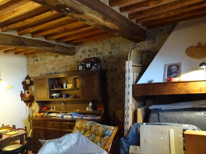 Rif. 0903 - Montespertoli San Quirico - Vendesi in piccolo e antico borgo appartamento di tre vani con ingresso singolo, disposto su due piani della superficie di mq 70 ca.. L' appartamento, ristrutturato di recente, è composto al piano terreno da piccolo vano ad uso ingresso che disimpegna il locale soggiorno ed il locale cucina con caminetto, da un piccolo ripostiglio sottoscala e da un sovrastante locale ad uso camera con bagno-wc a cui si accede tramite scala privata interna. L' appartamento è inoltre dotato di due posti auto esterni e corredato da infissi esterni in legno con vetro camera, pavimenti in cotto imprunetino e solai con travi a vista.