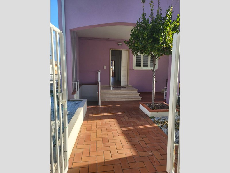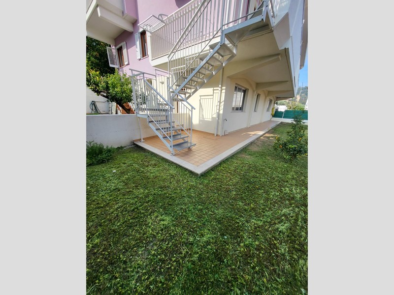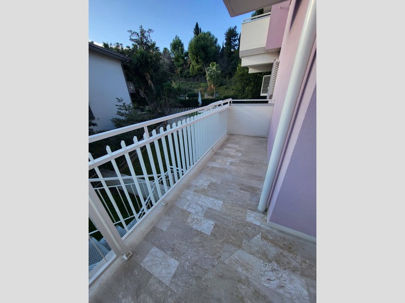 Vendesi appartamento in villa bifamiliare di 150mq in zona residenziale, al confine tra San Benedetto del Tronto e Grottammare, appena collinare, posto al piano terra con ingresso indipendente così composto: Ingresso su disimpegno, grande salone/soggiorno, cucina abitabile, 3 camere matrimoniali, 2 bagni finestrati ed 1 ampio ripostiglio. Completano l'immobile un ampio balcone abitabile di circa 45mq, un garage con cancello elettrico di circa 50mq, 1 cantina di 30mq. Troviamo anche un giardino semi pavimentato di 50mq all'ingresso ed un altro giardino posto al piano interrato di 80mq fornito di cisterna per l'acqua piovana per irrigazione. La proprietà presenta finiture di alto livello, molto luminoso, aria condizionata, porta blindata, impianto d'allarme interno ed esterno, infissi in legno con doppi vetri e persiane in alluminio, videocitofono e predisposizione per canna fumaria per camino.