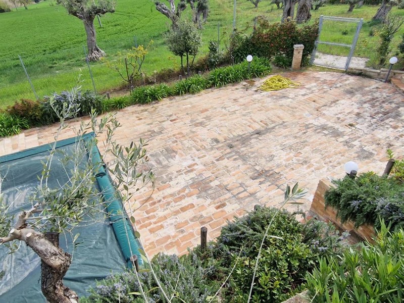 - tramite un percorso e delle scalette si arriva ad una zona pavimentata con mattoni antichi in cotto , dove troviamo un meraviglioso idromassaggio/piscina