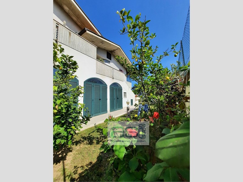 La villa si sviluppa su due livelli, al piano terra con ingresso indipendente in fase di costruzione da terminare. Attraverso la scalinata esterna è possibile arrivare al primo piano composto da ingresso, ampio salone luminoso, camino e comoda cucina con affaccio in terrazza con vista mare. La zona notte dispone di 3 camere matrimoniali con parquet e balconi, cameretta/studio e doppi servizi. La villa si trova in buone condizioni, ottima come abitazione per più famiglie; adatta anche per chi volesse realizzare una struttura a
