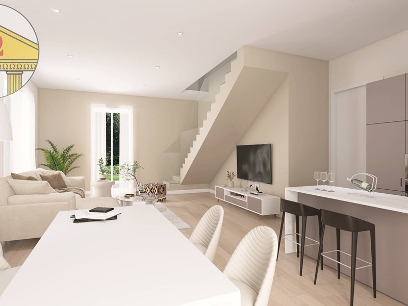 ARCADE - Abbinata di nuova costruzione completamente indipendente con giardino privato su tre lati, posto auto interno alla proprietà e garage al piano terra che divide dall'altra abitazione. Così composta: piano terra con soggiorno e cucina di mq. 37, bagno e garage; piano primo con tre camere (di cui due matrimoniali), bagno (possibilità di due bagni con ridistribuzione degli spazi). Possibilità di personalizzazioni. Tetto in legno con travi a vista. Impianto fotovoltaico di potenza 8 kW. Centrale termica con pompa di calore e riscaldamento a pavimento. Ventilazione meccanica. Classe energetica A4. Consegna fine 2026. Rif. 2894