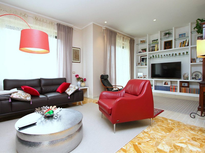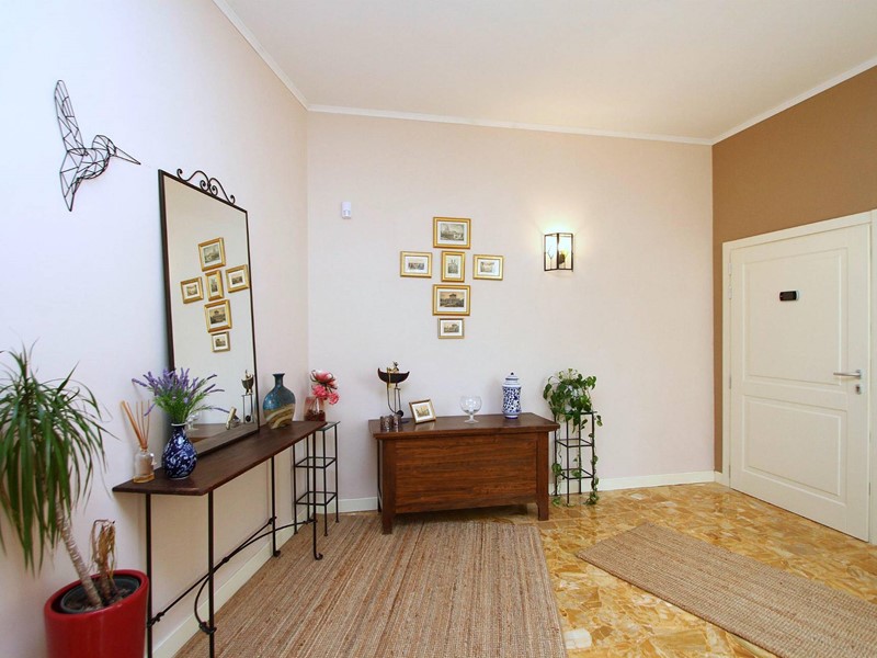 Entrando siamo accolti da un piacevole disimpegno che ci accompagna al grande soggiorno ad angolo , luminoso su entrambe i suoi lati grazie alle ampie finestre .