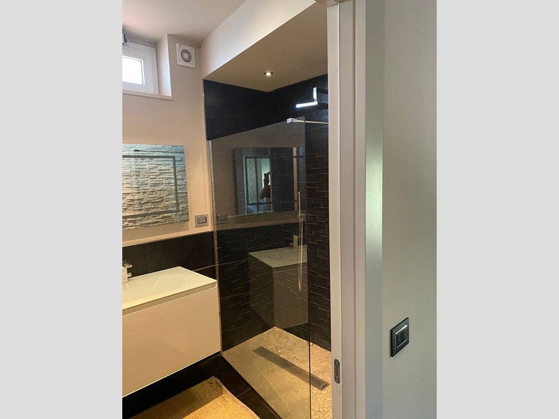 Al piano superiore secondo appartamento completamente rivisitato a nuovo composto da soggiorno con ampia vetrata ed accesso al terrazzo abitabile con vista panoramica, cucina abitabile, una suite matrimoniale con cabina armadio e bagno privato, una seconda camera anchessa matrimoniale ed un ulteriore servizio.