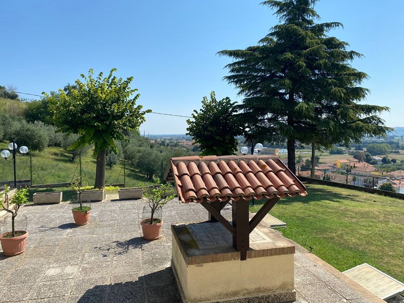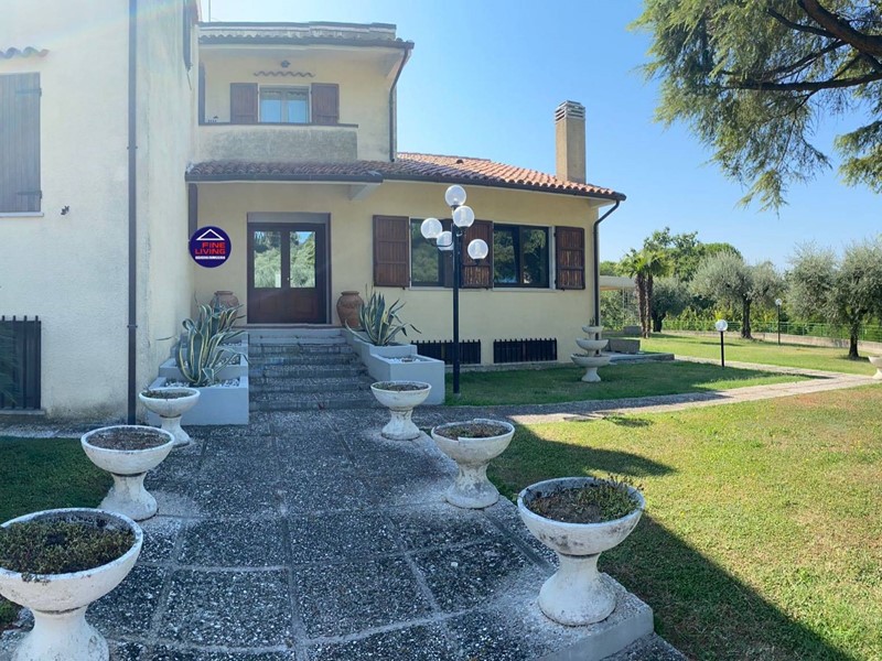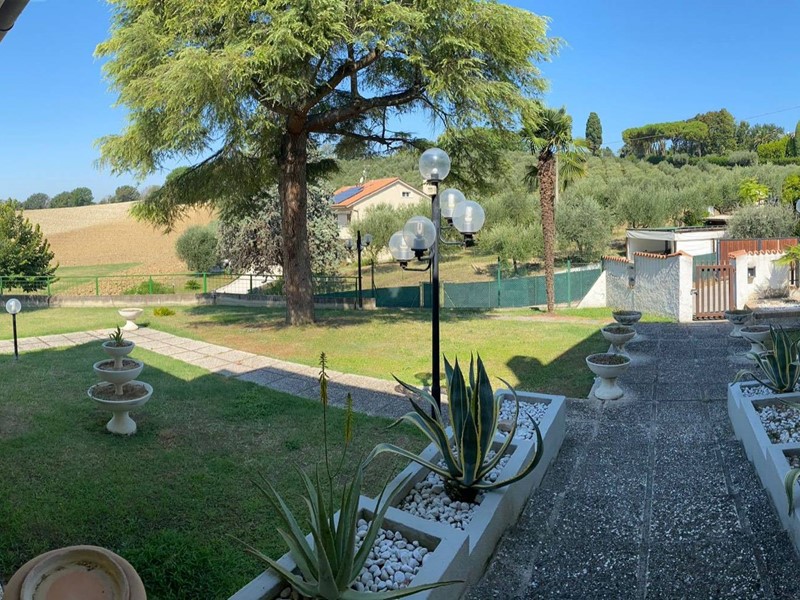 FANO - FRAZIONE CARRARA - A circa 15 minuti dalle spiagge fanesi, in posizione panoramica con vista mare e sulle colline, vendesi meravigliosa villa con splendido giardino perimetrale e terreno con ulivi.