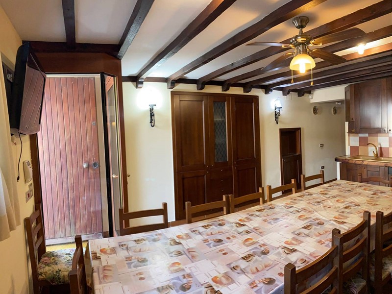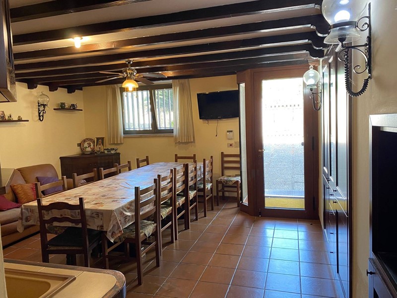 Ampia taverna con zona pranzo, cucina, bagno ed ulteriori due stanze.