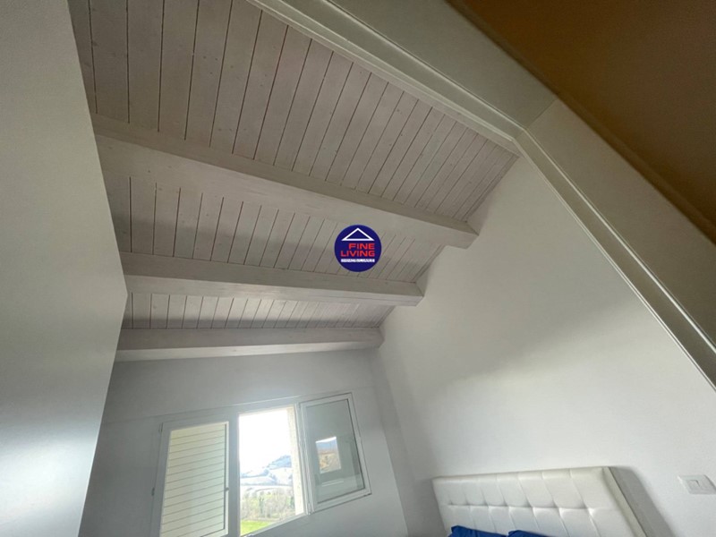 Il bagno, dotato di finestra e doccia, è rifinito con materiali moderni e di qualità. Il tetto in legno ventilato e coibentato assicura un'ottima efficienza energetica. Completa la proprietà un garage di circa 35 mq con attacchi per lavatrice, oltre a un posto auto esterno. Le finiture moderne e il perfetto stato di manutenzione rendono questa casa pronta per essere abitata.