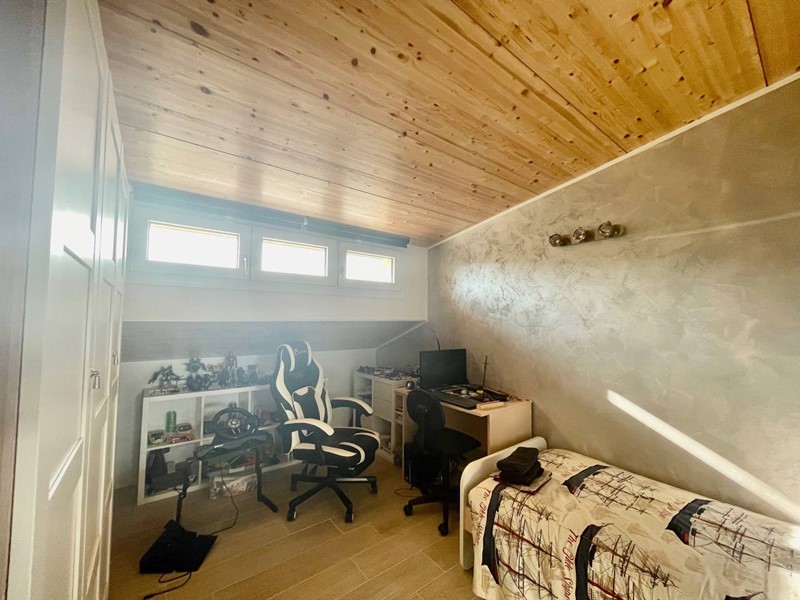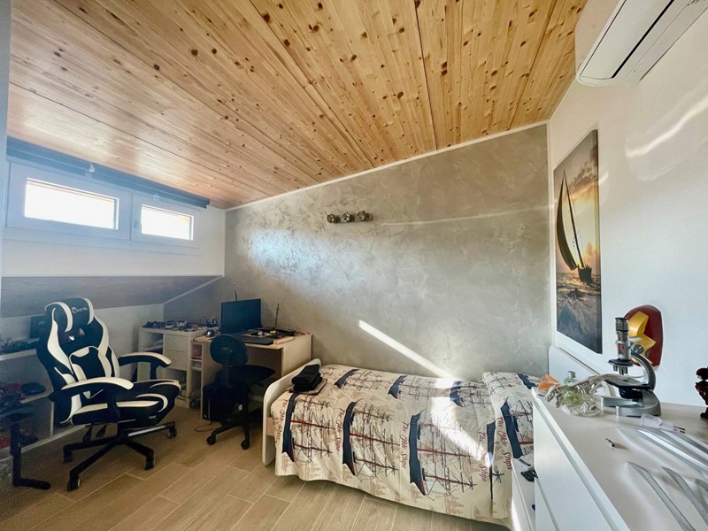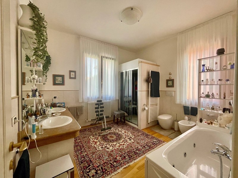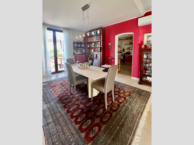 Limmobile, curatissimo in ogni dettaglio, è stato oggetto di recente ristrutturazione; il piano terra, ristrutturato nel 2007, è composto da ampio ingresso, grande cucina con grande dispensa ed accesso ad ampia terrazza abitabile, triplo soggiorno, anchesso con camino, luminosissimo in quanto affacciato sia sul terrazzo che sul giardino, disimpegno, due camere matrimoniali, sala da bagno con grande vasca idromassaggio e doccia idromassaggio, bagno finestrato con doccia e ripostiglio. Con comoda scala in marmo si accede al piano superiore, ristrutturato integralmente nel 2017 e composto da ingresso, open space con cucina a vista e terrazza a tasca, tre camere da letto, due matrimoniali ed una singola, due bagni finestrati con doccia.