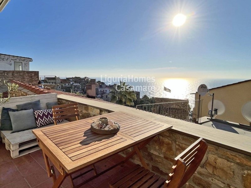 Casa di paese in vendita a Cipressa con terrazza e vista mare.