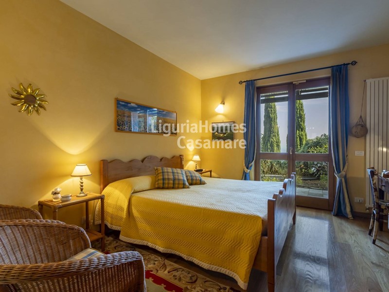 "Villa ai Cipressi" è una dimora elegante che si distingue per l'armoniosa fusione tra il tipico giardino mediterraneo e la struttura architettonica della villa stessa. Situata sul promontorio appena fuori il pittoresco borgo di Cipressa, questa villa in vendita, offre una vista mozzafiato che spazia dai tetti del paese fino al blu del mar Mediterraneo.