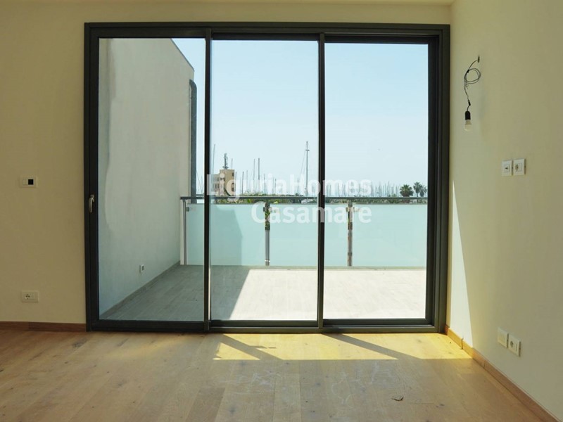 Internamente la proprietà è divisa in due camere da letto, una matrimoniale e una singola, un bagno e una zona living compresa di cucina, dalla quale si accede alla terrazza. La piscina condominiale, ottimamente integrata nei giardini comuni, si affaccia direttamente sui moli.
