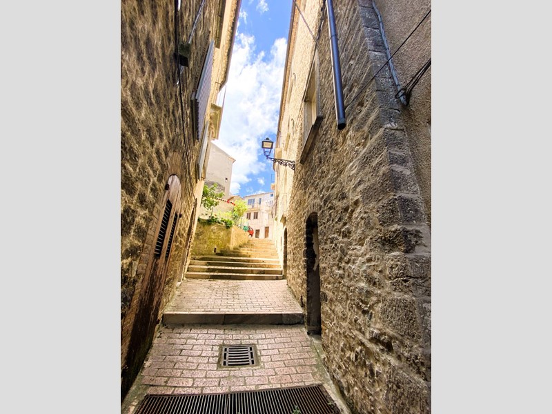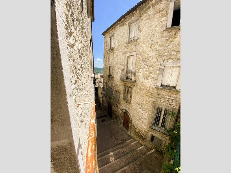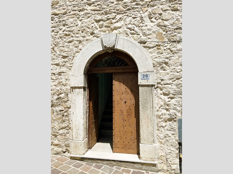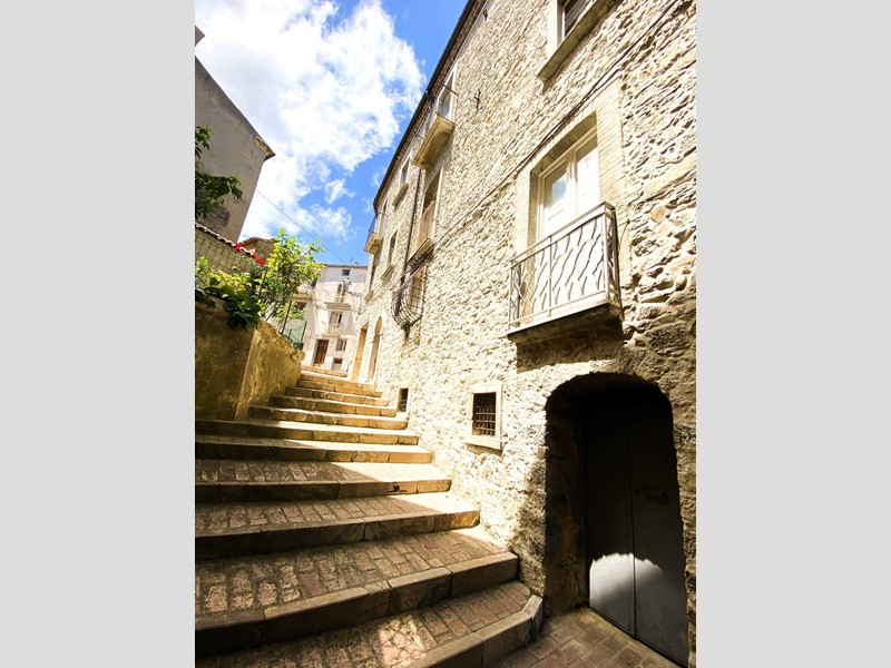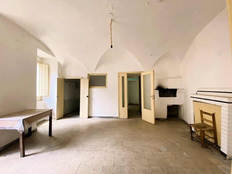 Da una suggestiva piazzetta a ridosso del Castello Marchesale e della Chiesa Madre di Santa Maria delle Grazie, si arriva allingresso principale composto da un antico portone sormontato da un portale in pietra, una bella scalinata su cui domina una peculiare volta a crociera ci conduce all'appartamento caratterizzato da voltati a botte dove troviamo: sala da pranzo con camino e tipico forno a legna e adiacente cucinotto, soggiorno con balcone, attraverso un disimpegno si arriva alla zona notte: camera padronale servita da balcone con vista aperta sulle colline e mare, altra camera doppia e un bagno finestrato con vasca. Completa la proprietà una cantina al piano terra