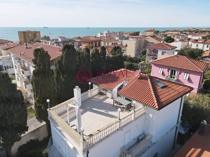 ANTIGNANO - RIF. 6030 - In collaborazione con la Delta Immobiliare Livorno, proponiamo, a due passi dal mare, una splendida villa in stile liberty recentemente ristrutturata con finiture di lusso, giardino perimetrale di circa 200 mq e grande terrazza attrezzata di 60 mq. L'immobile, che si sviluppa su 3 livelli, si presenta suddiviso al piano terra in una grande zona giorno, seguita da una sala con grazioso caminetto funzionante ed affaccio diretto sul giardino la cui esposizione a sud regala all'ambiente una grande luminosità. Troviamo poi una cucina abitabile di ottima qualità , bagno e ripostiglio. Tramite un elegante scala in marmo si accede al primo piano dove possiamo trovare tre ampie camere matrimoniali con balcone, uno studio e due bagni, il tutto perfettamente collegato tramite un ampio corridoio con libreria che divide discretamente gli ambienti della zona notte. Il secondo ed ultimo piano risulta essere mansardato con altezze abitabili e attualmente suddiviso in un cucinotto attrezzato, una zona giorno con grande lucernario, un bagno ed una terrazza attrezzata di 60 mq circa, esposta verso sud e con vista mare. L'immobile , di difficile reperibilità sul mercato, risulta essere in perfette condizioni manutentive ed è completo di condizionatori , caldaia nuova , autoclave.