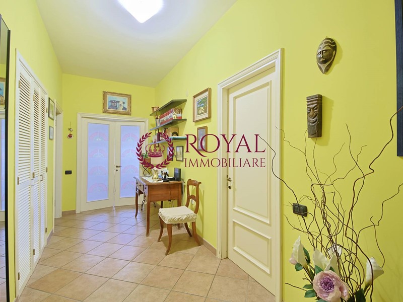 La disposizione degli spazi è ben studiata e funzionale: si può accedere alla proprietà da due entrate una condominiale e l'altro direttamente dal giardino, al suo interno troviamo un ampio ingresso con armadio a muro spazioso, zona giorno composta da un salone doppio luminoso con accesso al giardino di proprietà ideale per godersi momenti all'aria aperta, cucina tinello abitabile e un comodo balcone verandato adibito a lavanderia. La zona notte è composta da un corridoio tre camere da letto, di cui due con accesso diretto al terrazzo privato per recarsi nel giardino due bagni finestrati completi di tutti i sanitari.