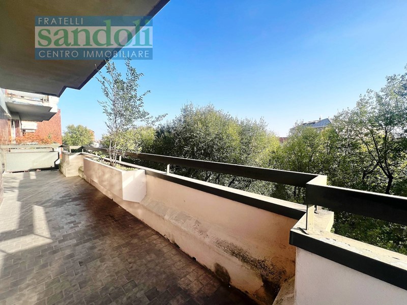 L'alloggio si trova al quarto piano di una palazzina signorile, dotata di ascensore e con affaccio su un giardino condominiale molto curato, ed è composto da ingresso doppio, ampio salone con accesso al terrazzino, spaziosa cucina abitabile, doppi servizi, disimpegno che porta alla zona notte dove troviamo quattro camere da letto, ripostiglio e un locale studio o lavanderia, due terrazzi.