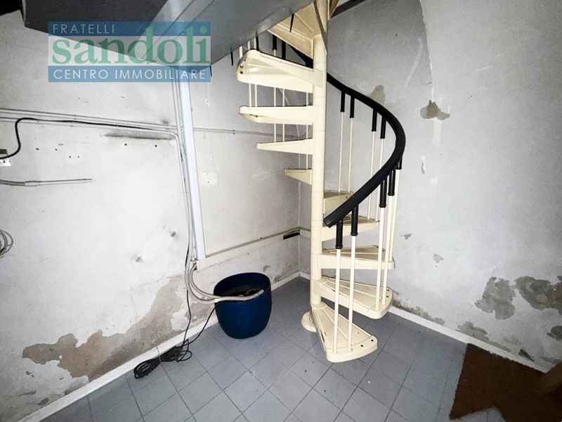 All'interno del negozio c'è un'altra scala a chiocciola dalla quale si accede al locale sottostante in cui troviamo la caldaia relativa all'impianto di riscaldamento.