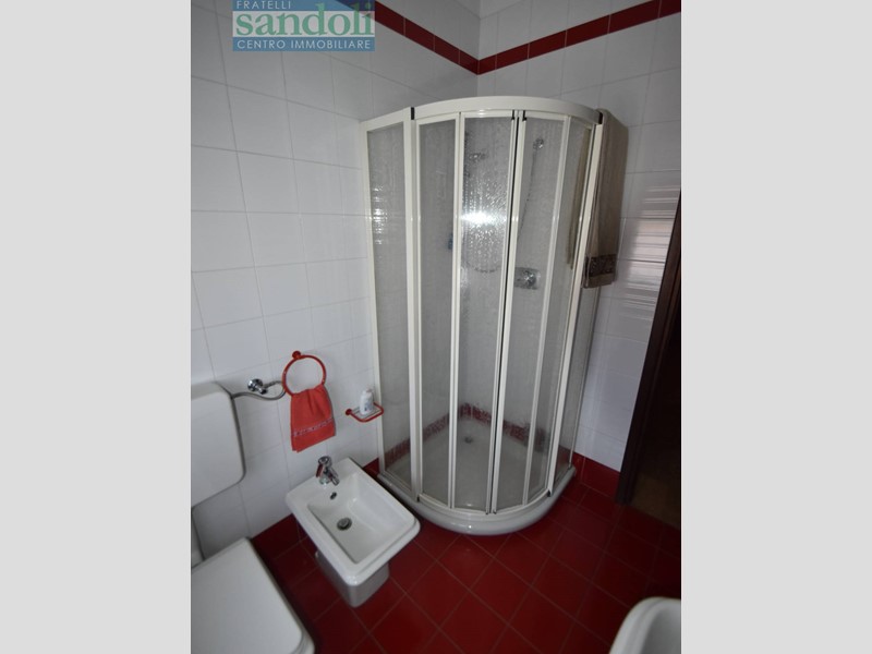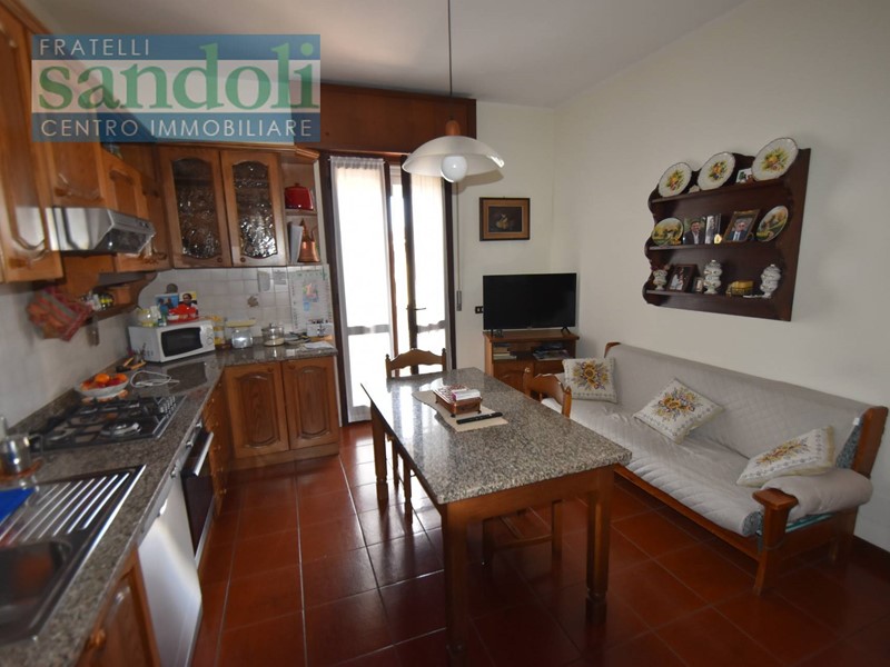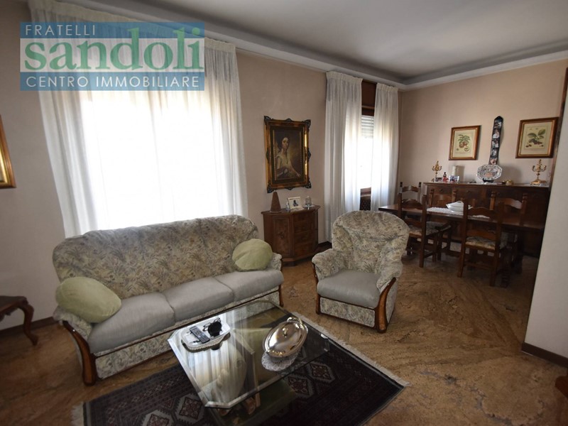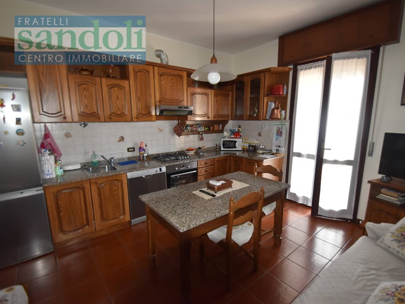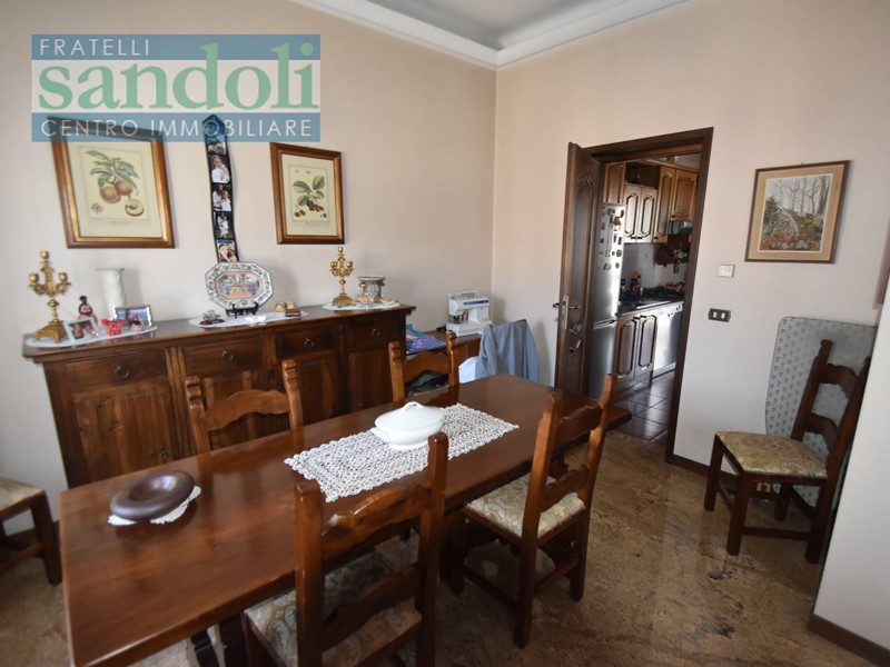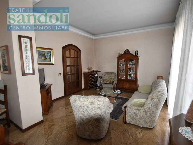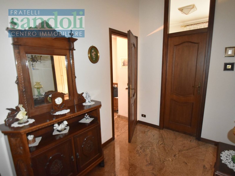 E' composta da un luminoso salone, con doppio accesso, sia dal vano scala, tramite grande porta all'inglesina in vetro e legno con telaio tondeggiante, che dalla cucina, quest'ultima molto ampia, e con accesso diretto al balcone.