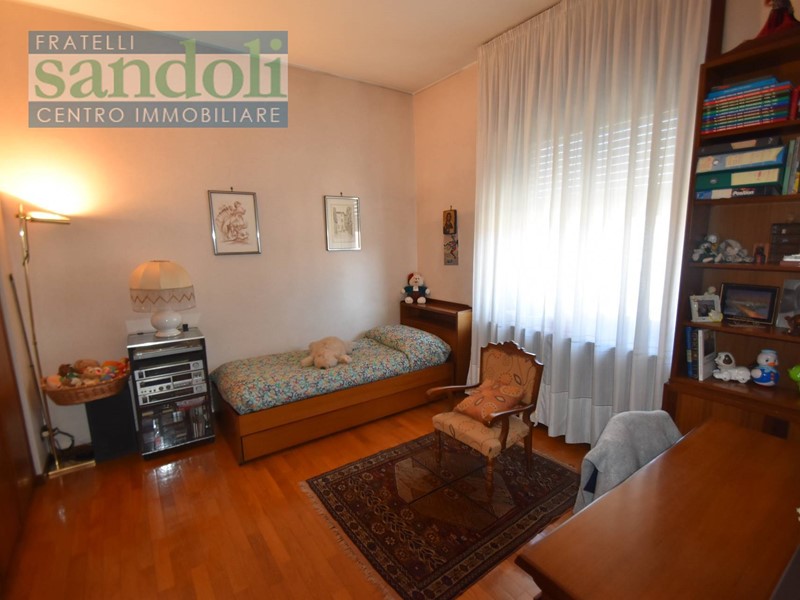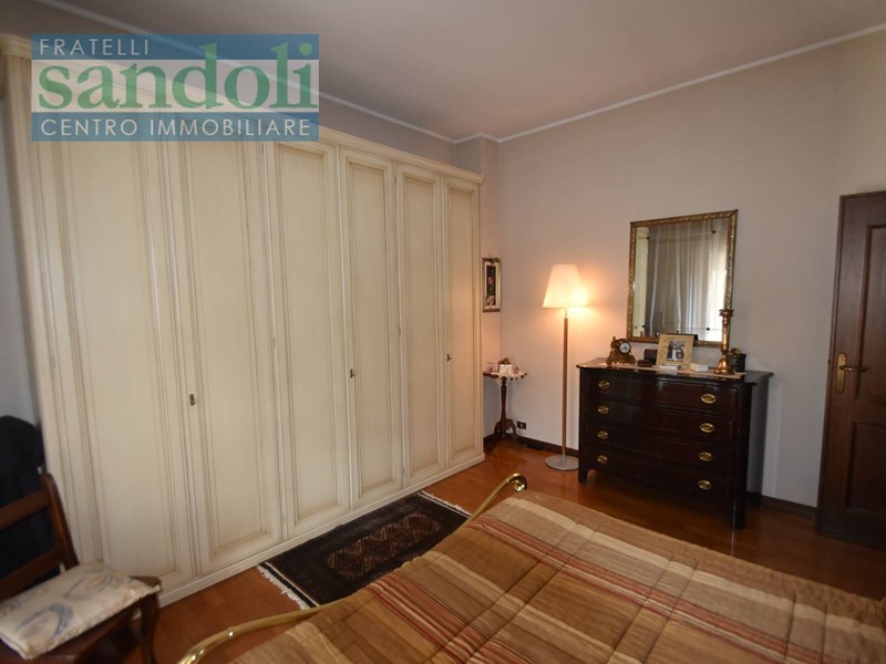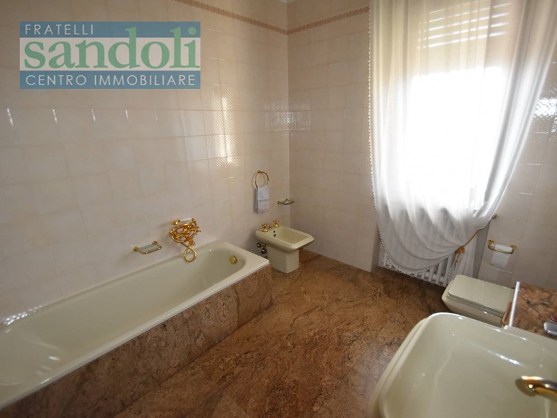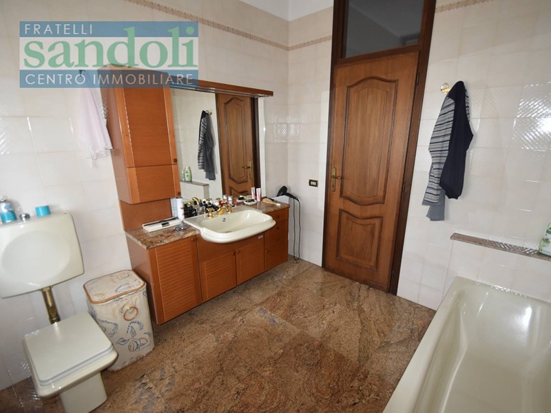 Dall'ampio disimpegno si accede alla zona notte, con pavimentazione in parquet, composta da due spaziose camere da letto, e doppi servizi, uno con box doccia angolare, e l'altro con vasca in stile.