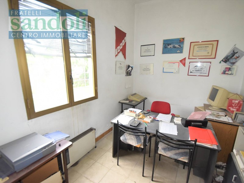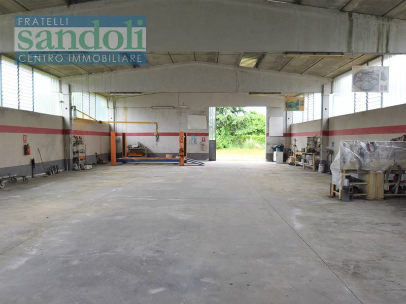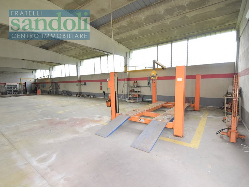 Edificato su un ampio lotto di terreno, è composto da un vano unico di circa 500 mq con grande portone scorrevole d'ingresso in ferro e vetro, al suo interno sono presenti un ponte sollevatore per auto a quattro colonne, una cabina di verniciatura con camino esterno nella parte posteriore del capannone, successivamente un primo locale ad uso ufficio con finestra, un secondo locale da utilizzare volendo come magazzino, la zona spogliatoio e relativo servizio con box doccia anch'esso finestrato.