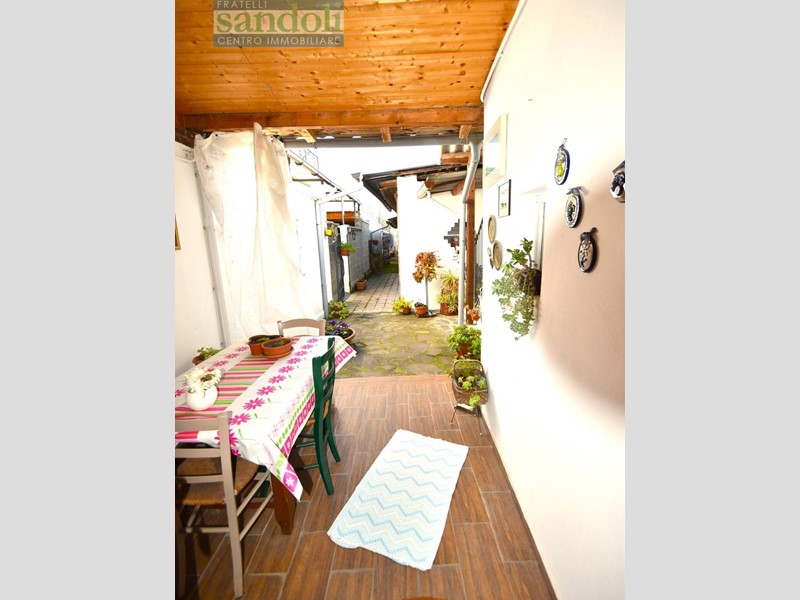 La zona giorno si espande al piano cortile ed è caratterizzata da stupende volte a botte sabbiate con mattoni a vista, dall'ingresso living nel caratteristico soggiorno con camino a legno si accede successivamente alla spaziosa cucina suddivisa in zona cottura e lavaggio e zona pranzo. Il piano si completa con il primo bagno con box doccia. Salendo poi dalla comoda scala interna raggiungiamo la zona notte con presenti due ampie camere da letto, il secondo bagno ed il terrazzo con accesso esclusivo. Inoltre tramite scala esterna si può salire ulteriormente per accedere ad un locale al grezzo.