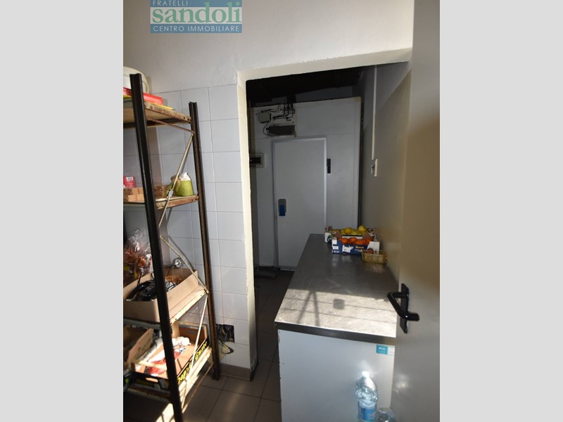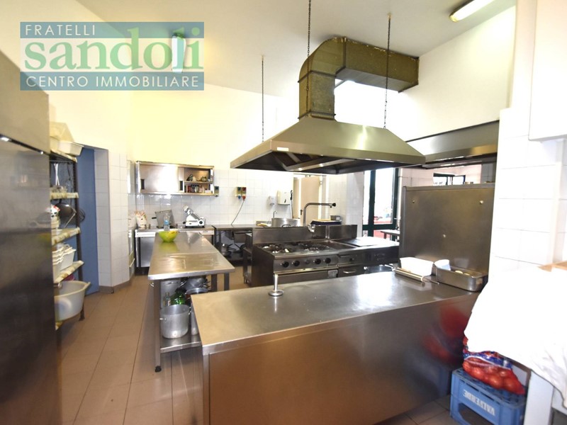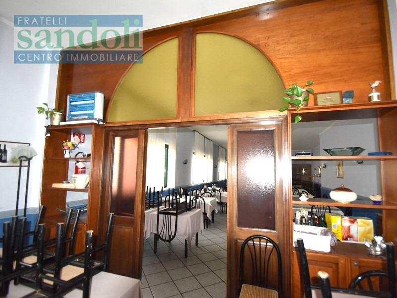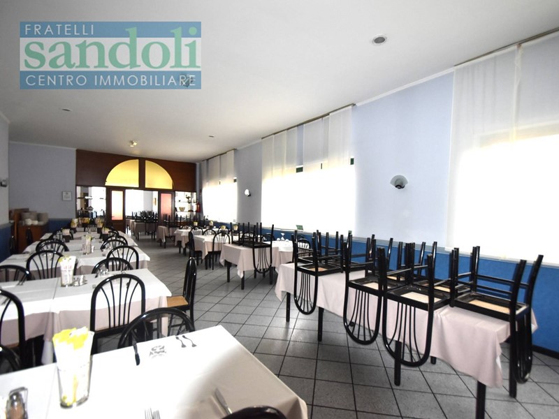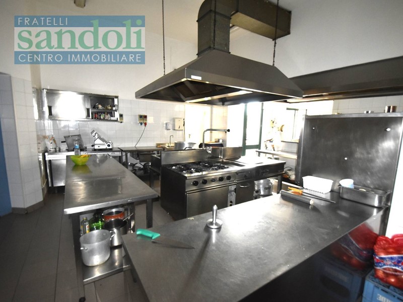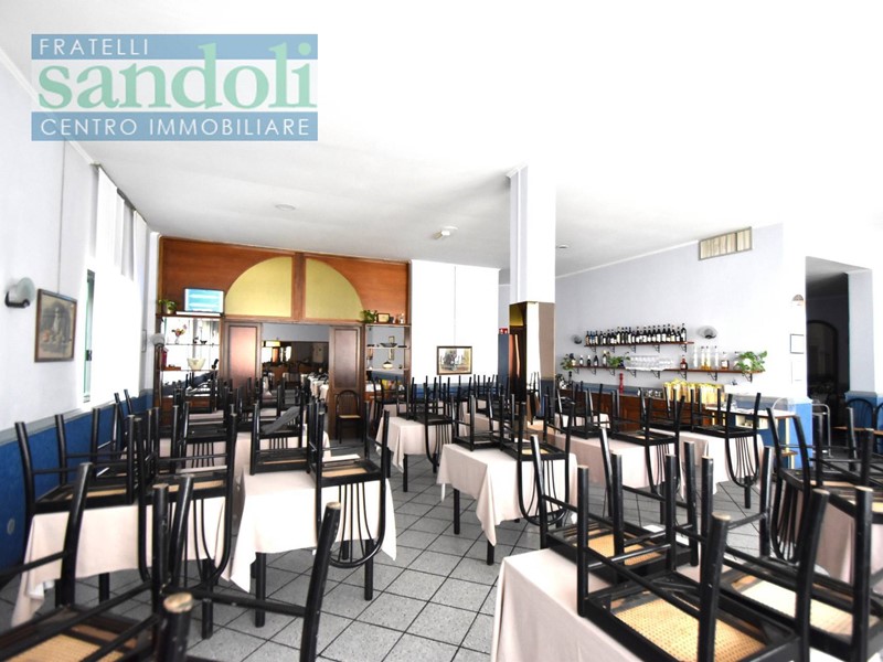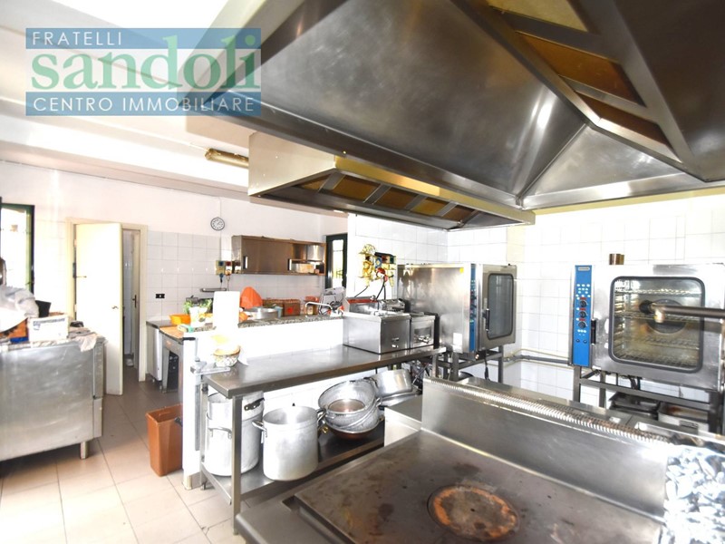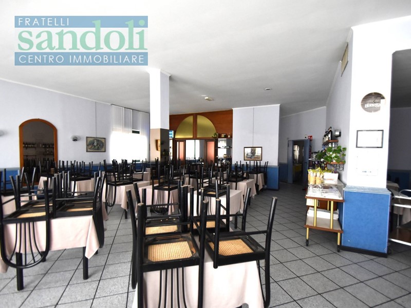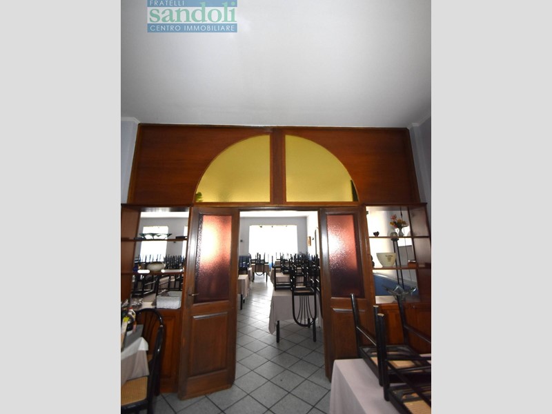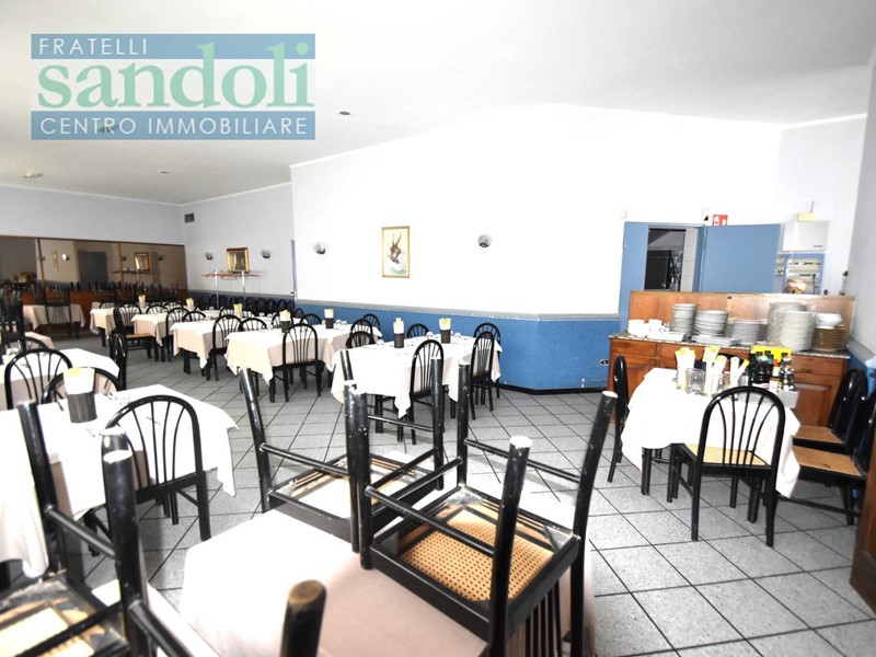 In zona ben collegata ad ogni tipo di servizio al piano strada attualmente vi è il grande salone adibito a ristorazione, dall'ingresso living si accede direttamente alla reception, dove troviamo una piccola saletta ed un disimpegno che da accesso ai servizi della clientela, successivamente passiamo alle due grandi sale principali divise da una grande vetrata con vetri a cattedrale e telaio in legno a semiluna finemente lavorato ed attrezzato. Proseguendo arriviamo all'ampia cucina totalmente attrezzata per l'attività di ristorante con a fianco gli spogliatoi e relativi servizi per eventuali dipendenti.