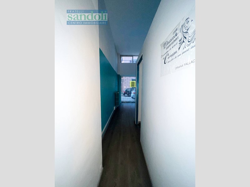 Attualmente l'immobile è adibito e strutturato come centro estetico, composto da ingresso reception con piccola sala di attesa, locale diviso di passaggio, locale chiuso da pareti di cartone gesso, retro e servizio.
