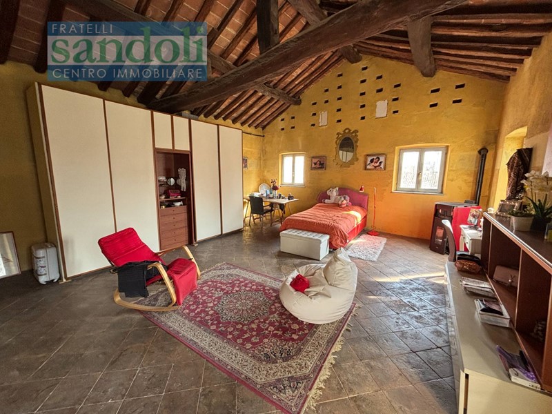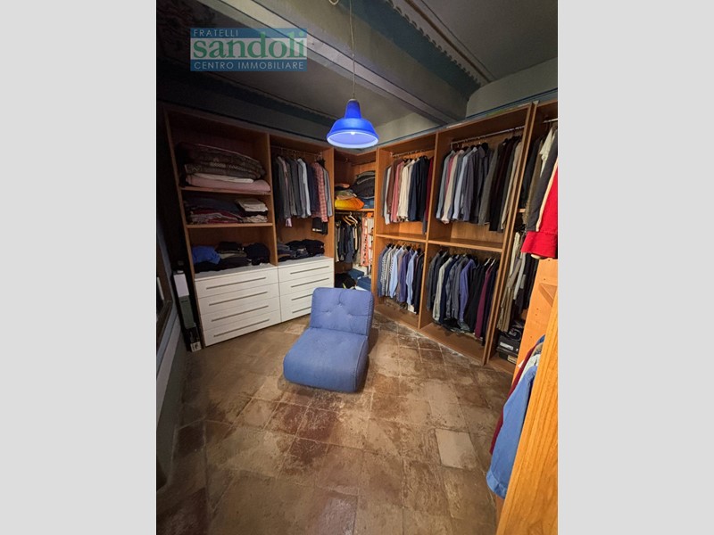 Tra i dettagli che impreziosiscono questa residenza troviamo pavimenti in cotto antico, soffitti a cassettoni finemente decorati e infissi esterni in legno con doppi vetri, che mantengono il calore dell'atmosfera storica assicurando al contempo isolamento e comfort.