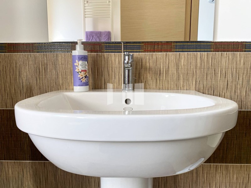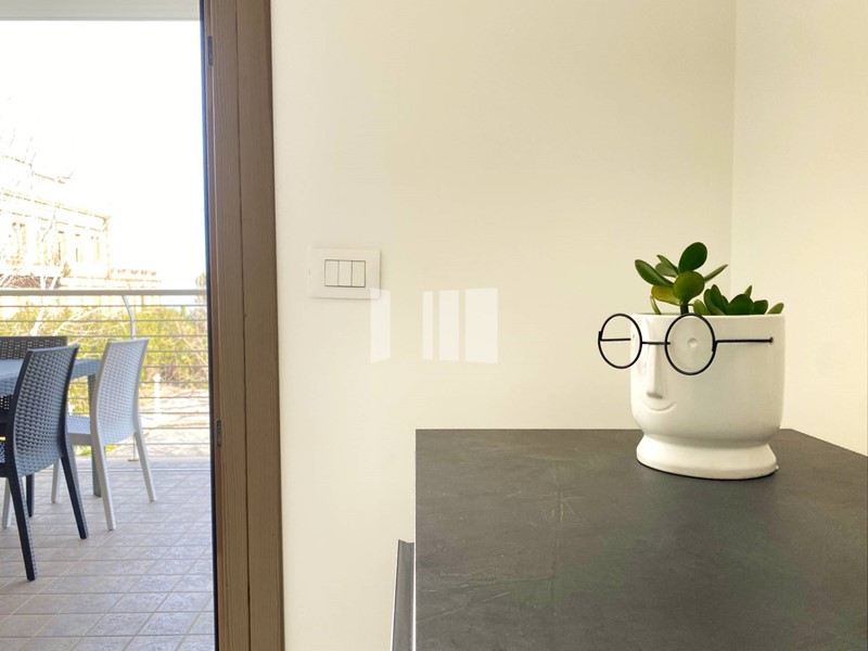 La soluzione ha a disposizione un comodo e funzionale terrazzo esposto ad est vista mare, accessibile dalla zona giorno, dov'è presente uno spazio tecnico con mobile lavatoio e lavatrice.