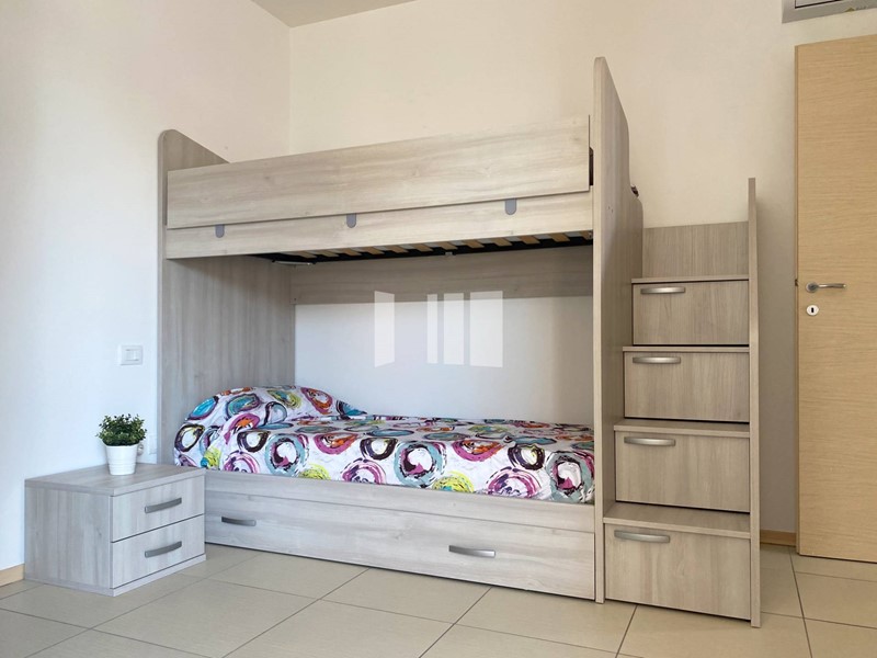 L'appartamento, arredato in modo moderno e funzionale, presenta buone finiture interne ed è composto da un luminoso ingresso-soggiorno con cucina a vista provvista di lavastoviglie, una comoda camera da letto matrimoniale, una camera doppia con letto a castello e un bagno con finestra e box doccia.