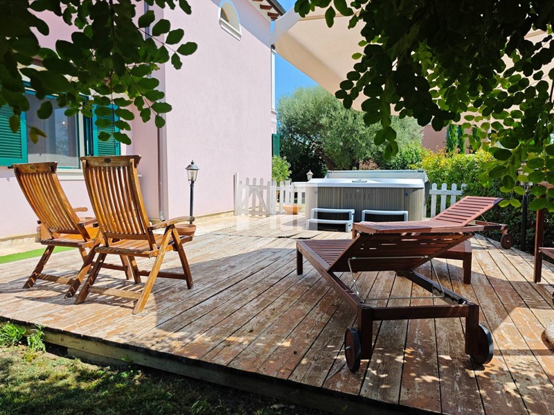 DETTAGLI: La villa presenta ottime finiture interne. Presente in quasi tutti gli ambienti il parquet, gli infissi sono in legno doppio vetro con persiane in alluminio. Nella zona notte e nella zona giorno sono presenti i condizionatori. Presente colonnina ricarica auto elettrica ENEL X di tipo 2.