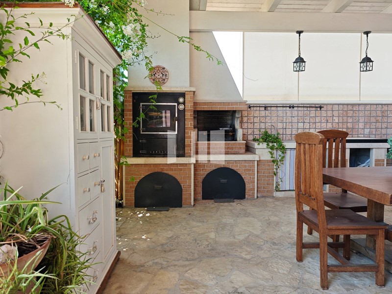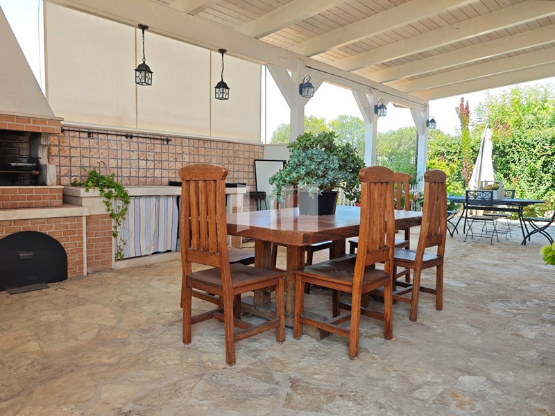 La proprietà gode di un meraviglioso giardino verdeggiante e ben curato e di una siepe che ne delimita il perimetro. Su di un patio in legno troviamo la zona solarium con vasca idromassaggio, dove trascorrere piacevoli momenti in relax. Esposto ad ovest è presente una generosa pergola organizzata in modo da poter accogliere pranzi, cene e feste con amici e in famiglia. La zona portico è dotata di una struttura in muratura dov'è presente forno a legna e lavello. Inoltre, gode di una meravigliosa vista libera sulle cime del Gran Sasso.