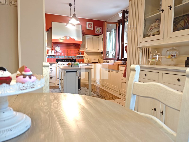 Su questo livello è presente il generoso soggiorno, l'ampia e luminosa sala da pranzo con il meraviglioso camino e la comoda cucina abitabile che affaccia sul portico. Inoltre, troviamo una camera da letto matrimoniale e un bagno con box doccia e finestra.