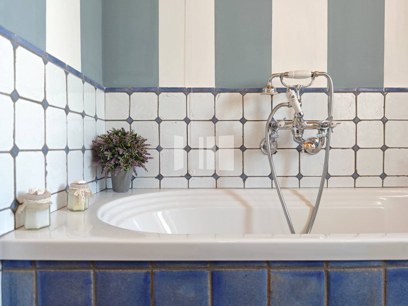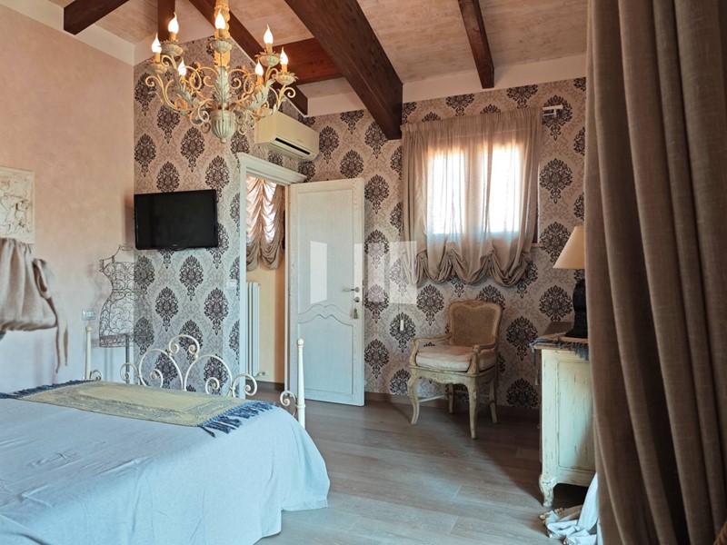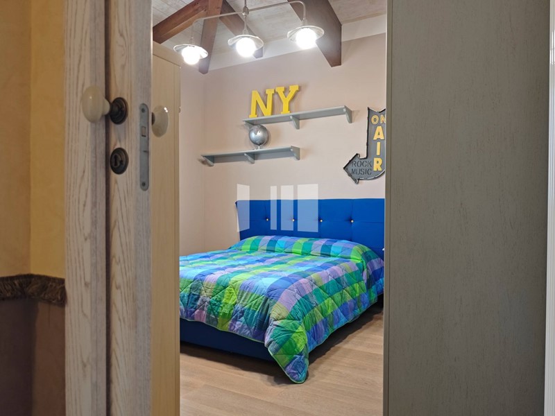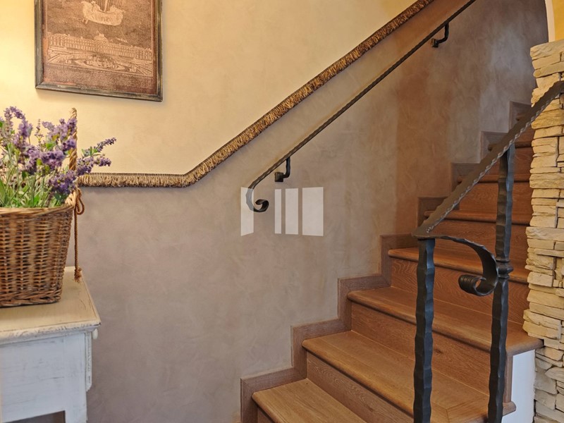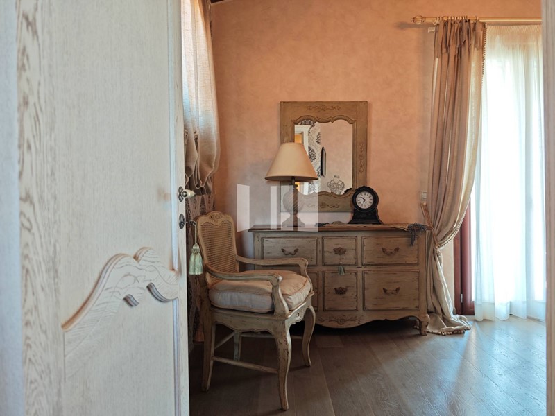 - Al primo piano, dove possiamo apprezzare l'alto soffitto con travi in legno a vista, è presente la zona notte composta dalla camera da letto padronale con la funzionale cabina armadio e terrazzo privato; dalla seconda camera da letto matrimoniale esposta ad ovest e dal comodo bagno con vasca e finestra.