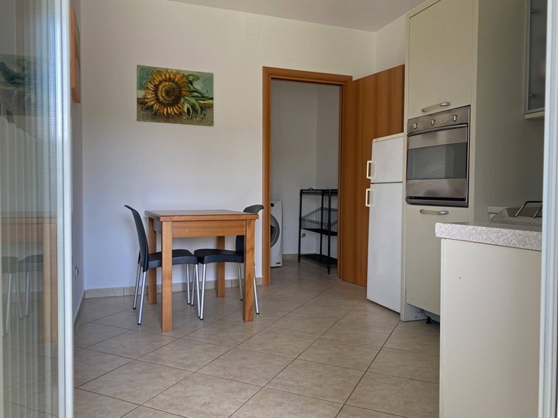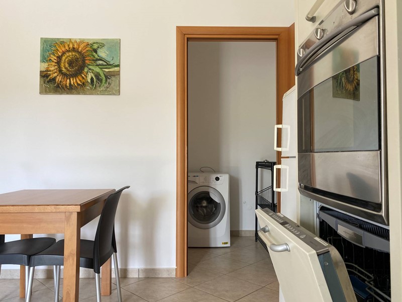 L'appartamento, arredato in modo moderno e funzionale, presenta buone finiture interne ed è composto da un luminoso ingresso-soggiorno, una cucina abitabile provvista di lavastoviglie, una dispensa/lavanderia dov'è presente una lavatrice, una comoda camera da letto matrimoniale, una camera doppia con terrazzino privato e un bagno con finestra e box doccia.