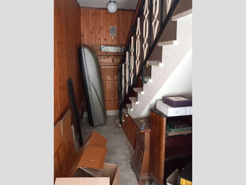 Piano terra: ingresso, garage/rimessa per scooter, bagno di servizio e scala che collega tutti i livelli.