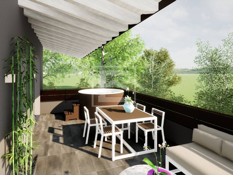 L'ampio giardino di circa 200 mq e il piacevole terrazzo coperto di circa 40 mq consentono deliziosi momenti di relax all'aperto.