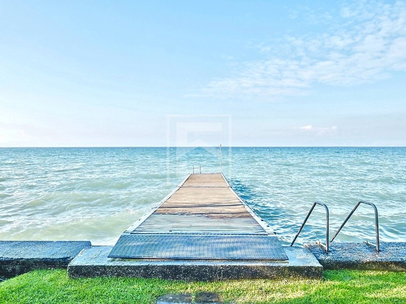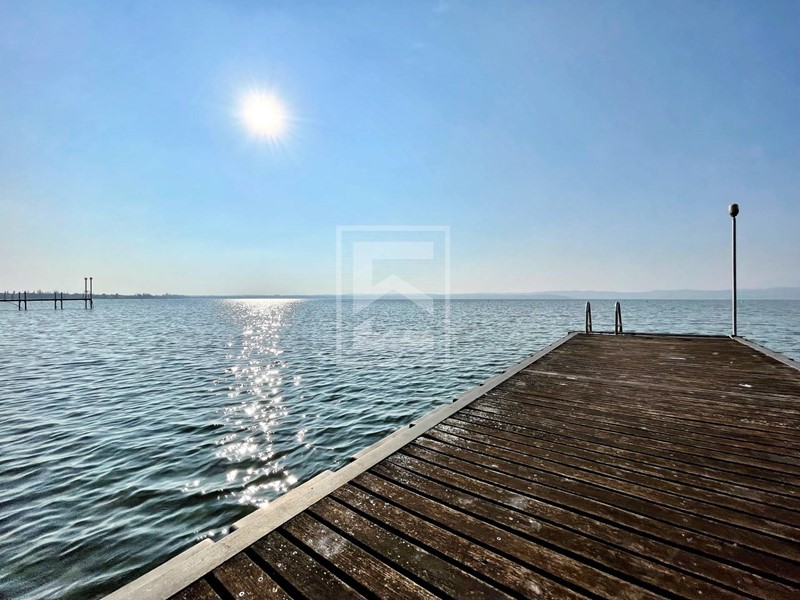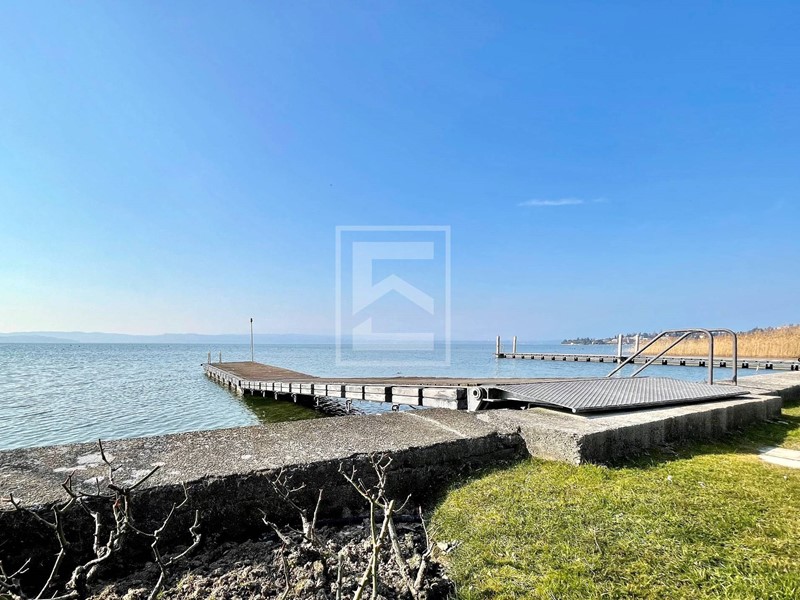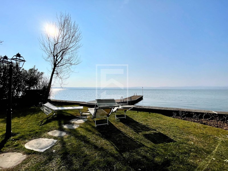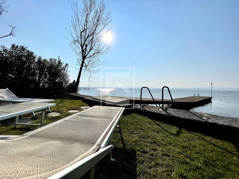 In contesto recentemente ristrutturato, direttamente a lago, con giardino/spiaggia e pontile condominiale vendesi grazioso appartamento con vista lago parzialmente arredato.