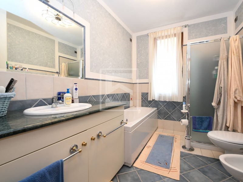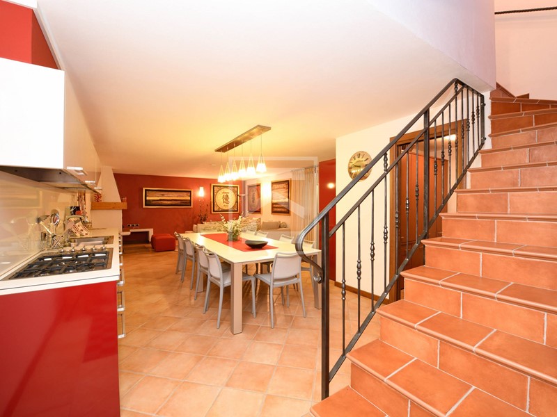 Al piano terra troviamo la zona giorno con salotto, una cucina non grandissima ma separata, una camera matrimoniale padronale con bagno privato, seconda camera matrimoniale, uno studio ed un secondo bagno.