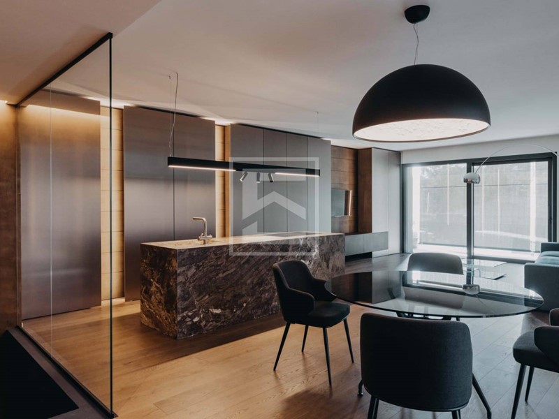 - Serramenti in alluminio con vetri basso emissivi a tutta altezza, ante esterne scorrevoli tutta altezza