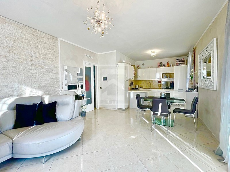 Entrati in appartamento si trova l'ampia zona living con cucina a vista, mentre il disimpegno ci conduce alla zona notte composta da camera matrimoniale, camera singola e bagno.