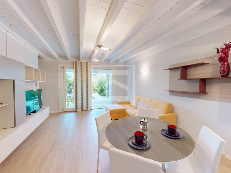 Viene venduta completamente arredata e corredata come da servizio fotografico allegato ed è composta al piano terra da soggiorno con cucina abitabile separata serviti da grandi vetrate alzanti scorrevoli che accedono ai giardini e direttamente alla splendida piscina; un bagno finestrato completa il piano.
