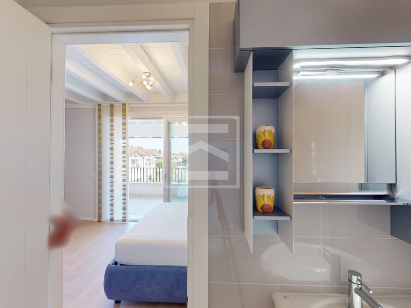 Al piano primo troviamo la master room con bella loggia coperta di 15 mq, bagno privato e cabina armadio, una seconda camera matrimoniale e un bagno finestrato.