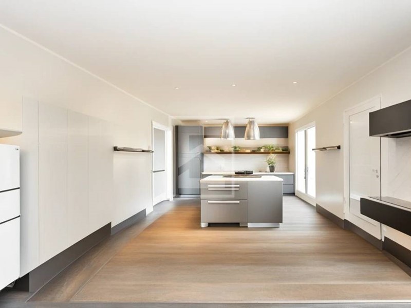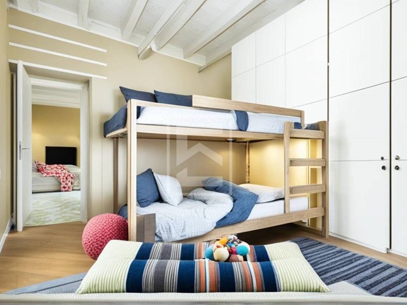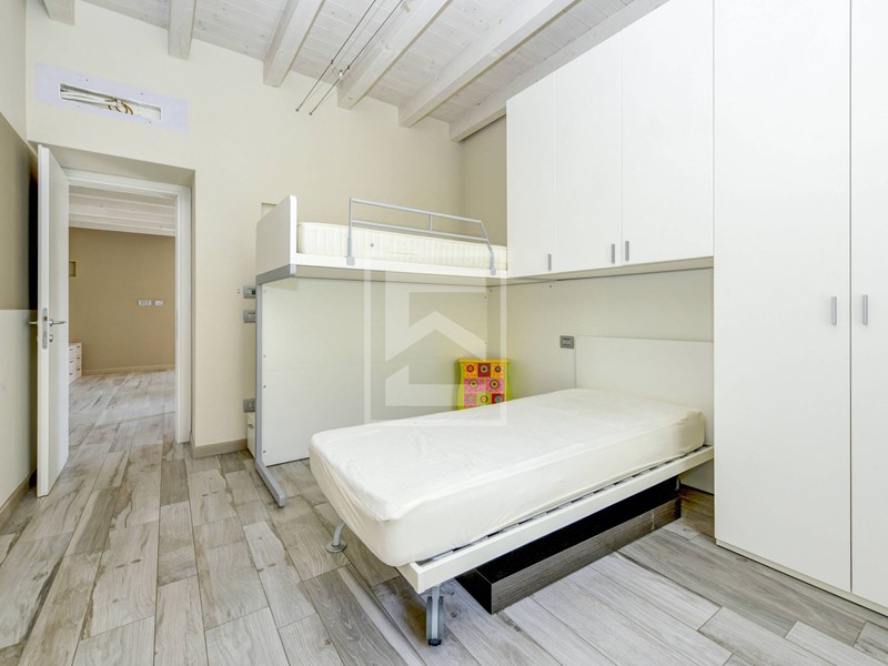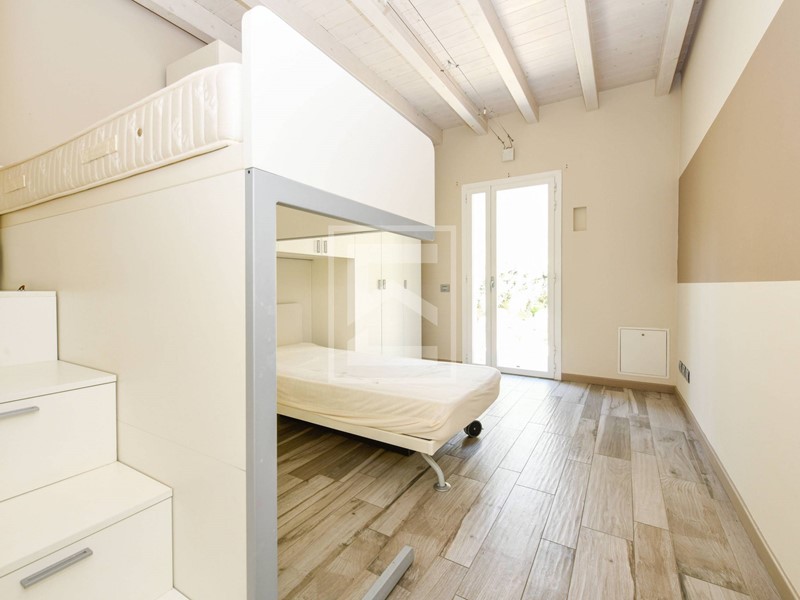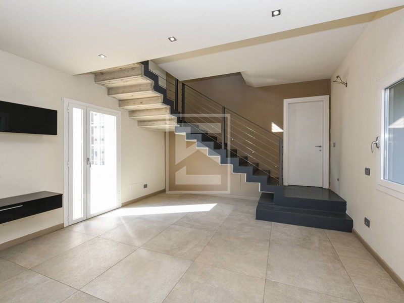 A piano terra c'è la zona giorno e un locale lavanderia/bagno, la scala con finitura in resina porta alla zona notte composta da un disimpegno, 3 camere un bagno e 2 balconi.